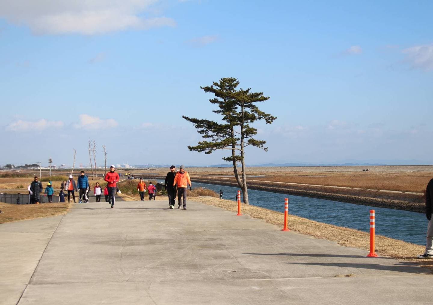 普段はサイクリングコースとしても使用されている道で、平坦な走りやすいコースとなっています。初心者にも優しく、記録も出しやすい点が魅力!(2022年より砂利道を大幅短縮!)また、街中と違ってとても開放的なため、空気も澄んでいるように感じます。今もなお道路の拡張や舗装が続いている道のため、大会を重ねるごとにコースから見える風景が変化していくのも、震災復興マラソンならではの楽しみの一つ!毎年参加してくださっているランナーの方からも大変好評です。